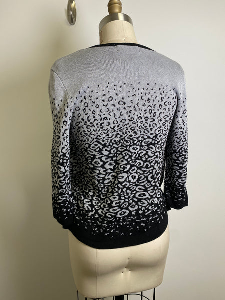 Alfred Dunner Silver/Black Sweater, S Petite