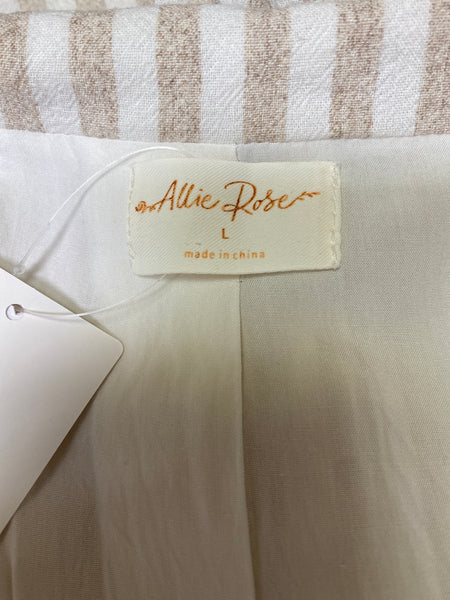 Allie Rose Tan Stripe Linen Blend 3/4 Sleeve Jacket, L