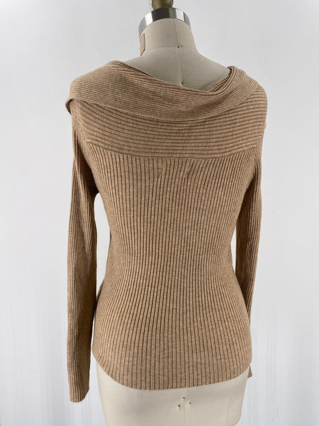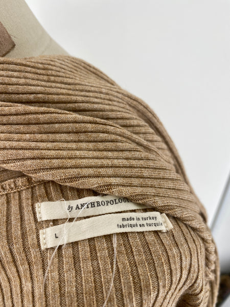 Anthropologie Brown Rib Knit Fitted Sweater, L
