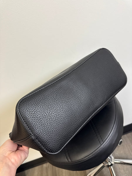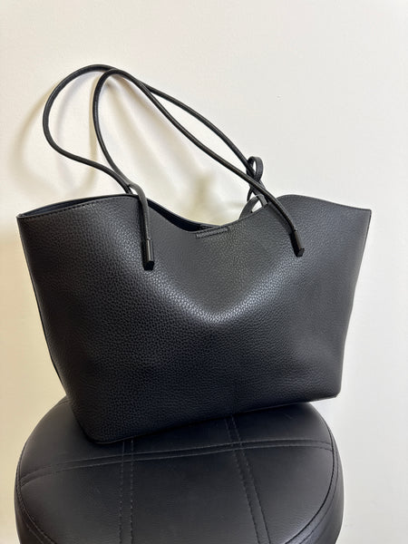Overpackers will delight at the spacious interior of a faux-leather tote bag that comes with an included zippered pouch to keep essentials easy to find.