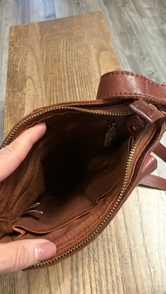 Ashwood Brown Leather Woven Crossbody Bag, 7.5"x9"