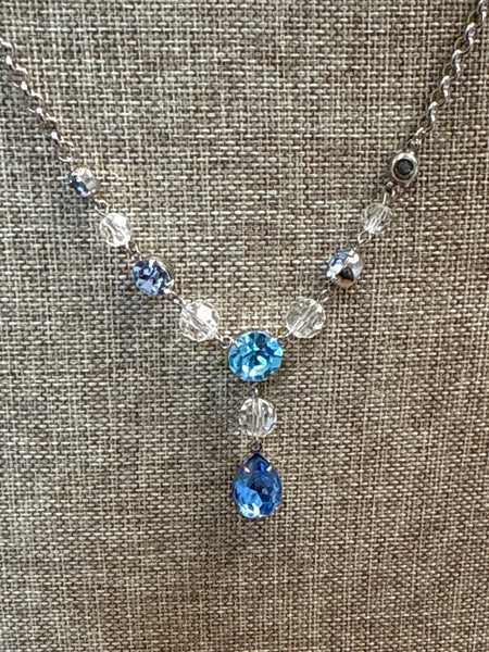 Blue & Clear Faceted Stone Necklace, 16"-18"