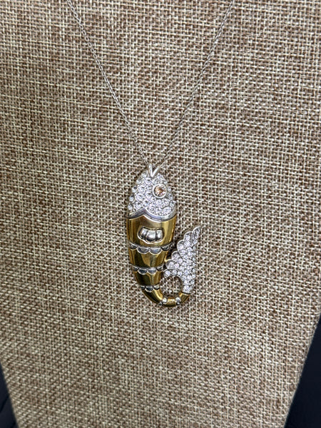 Features: - Length: 36" to 38" Adjustable - Pendant Drop: 2 1/8" - Closure: Lobster - Finish: Two-Tone Silver/Gold Plated - Material: Swarovski Crystals - Color: Gold and Silver - Style: JL9672