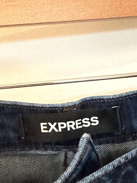 Express Denim Midi High Rise Shorts, 4