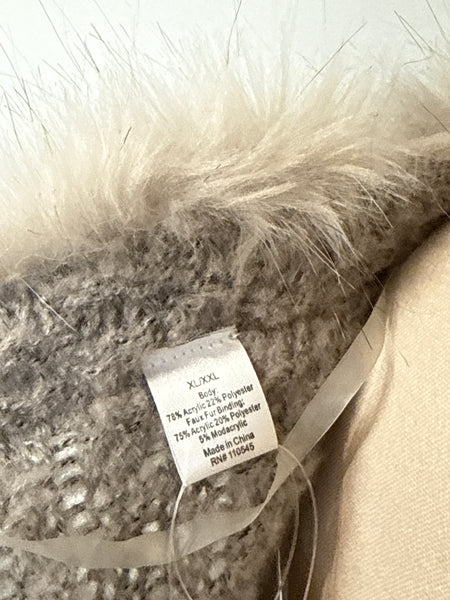 Faux Fur Trim Cardigan, XL/XXL