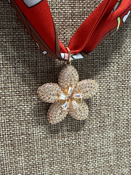 J Bloom Red Scarf + Pendant Necklace