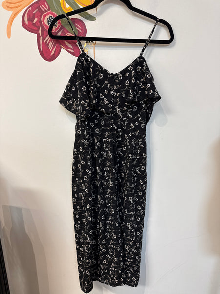J.O.A. Black Open Shoulder 17" Inseam Cropped Jumpsuit, S