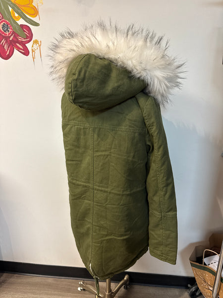 K Jordan Green with Removable Faux Fur Trim Jacket, M