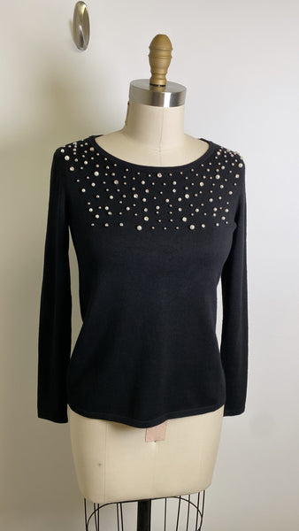Liz Claiborne Black with Pearl Accents Sweater, S Petite