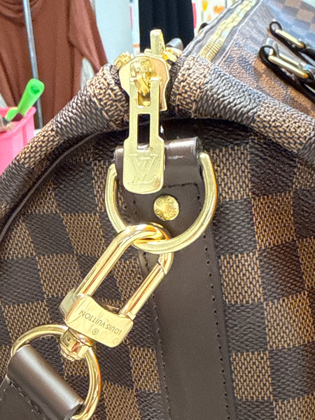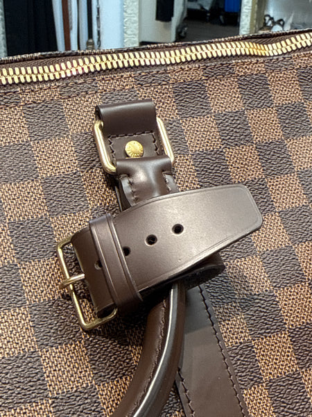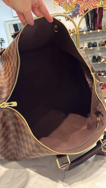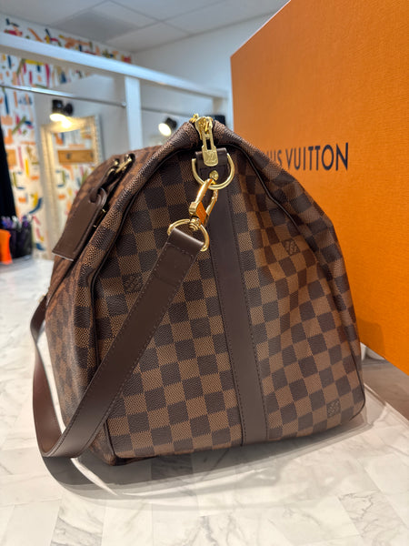 An icon since the appearance in 1930, the Keepall embodies the spirit of modern travel. Light, supple and always ready for immediate departure, the bag lives up to its name: those adept at the art of packing can easily fit a week's wardrobe into the generously sized (and cabin-friendly) Keepall 55. Shown here in classic Damier Canvas, with a strap for casual cross-body wear.