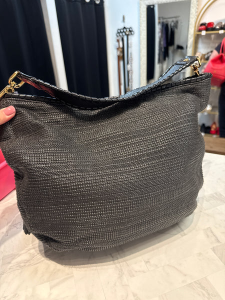 Michael Kors Black Woven Bennet Hobo Bag, 15"x11"