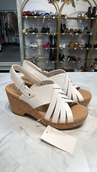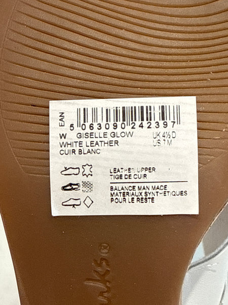 New Clarks White Giselle Glow Leather Sandals, 7