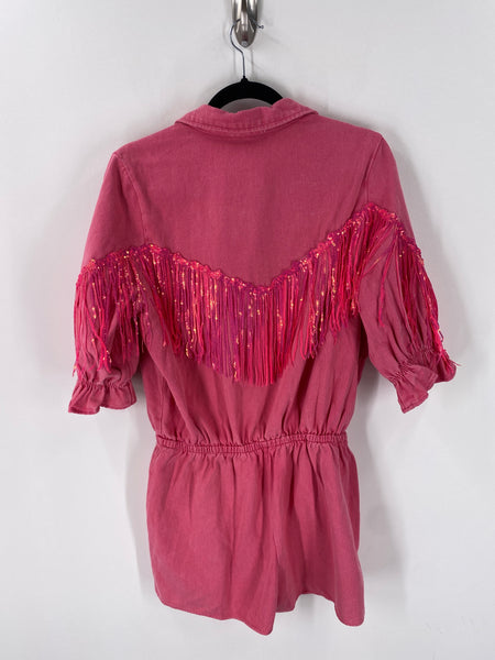 New Fantastic Fawn Pink Denim Tassel Romper, M