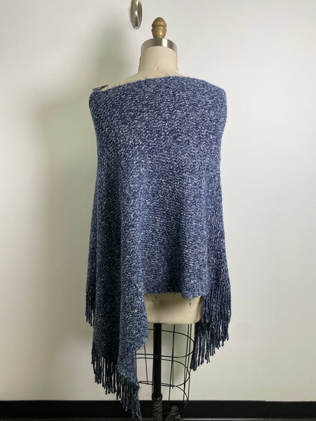 New GM Blue Fringe Poncho, One Size