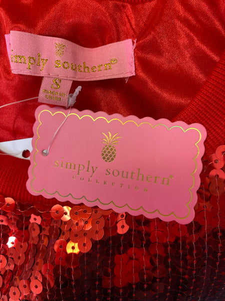 New Simply Southern Red Sequin Merry Christmas Top, S