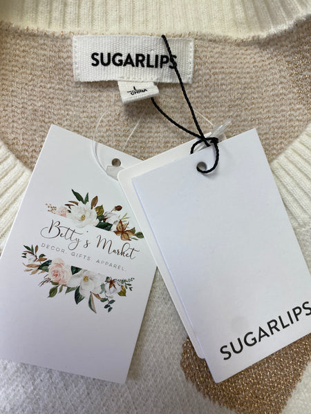 New Sugar Lips Heart Puff Sleeve Sweater, L