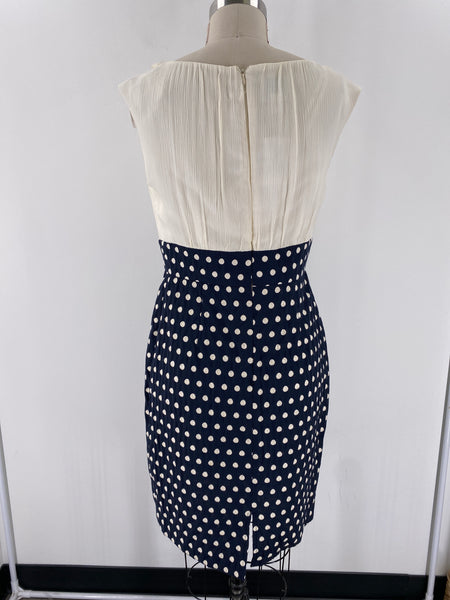 New Suzi Chin Ivory/Blue Polka Dot Dress, 8