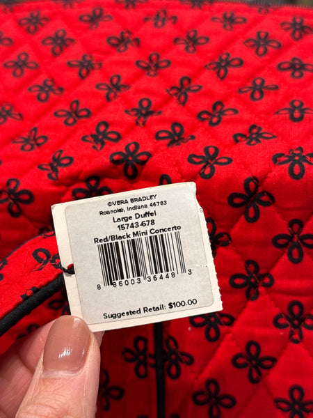 New Vera Bradley Red/Black Concerto Large Duffel Bag Carry-on, 21"x11"