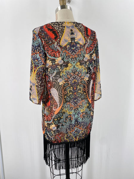 See You Monday Black Fringe Kimono, XS