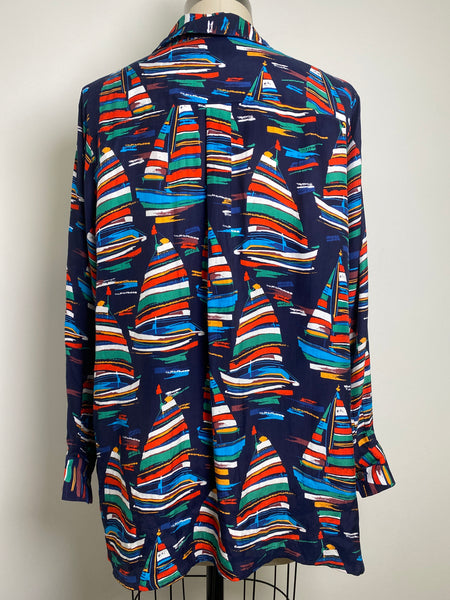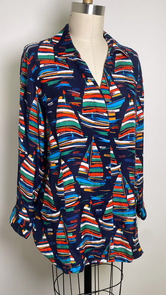 Soft Surroundings Blue Sailboat Print Top, L Petite