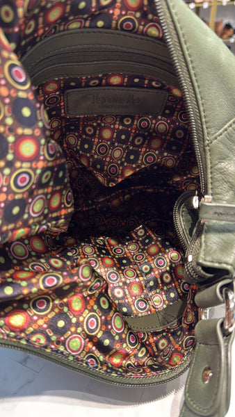 Tignanello Green Leather Shoulder Bag, 15"x10"