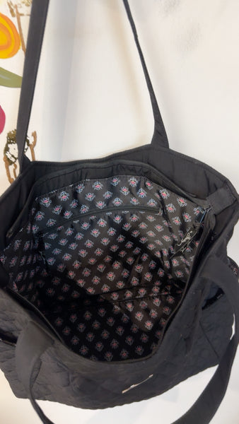 Vera Bradley Black Quilted Tote Bag, 13"x14"