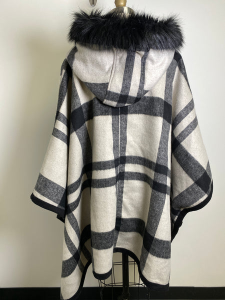 Via Spiga Plaid Zip Front Poncho, M/L